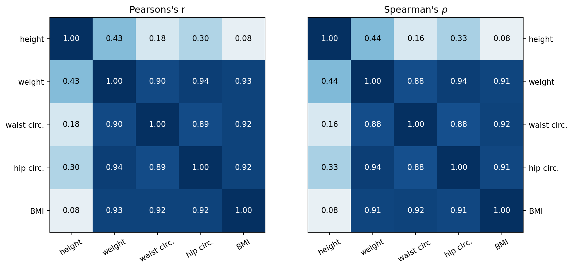 ax2.set_title(r"Spearman's $\rho$")