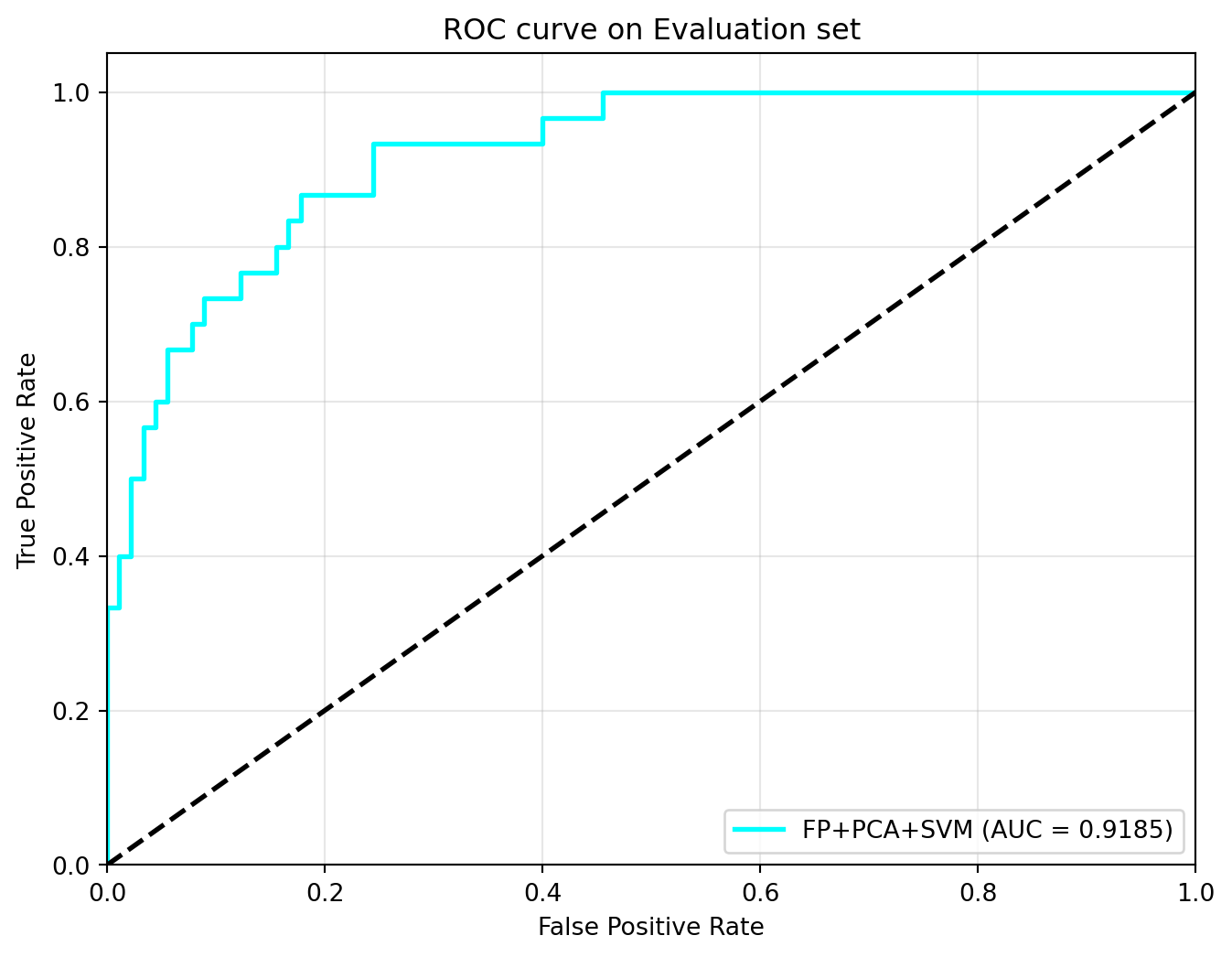 label=f"FP+PCA+SVM (AUC = {svm_roc['auc']:.4f})")