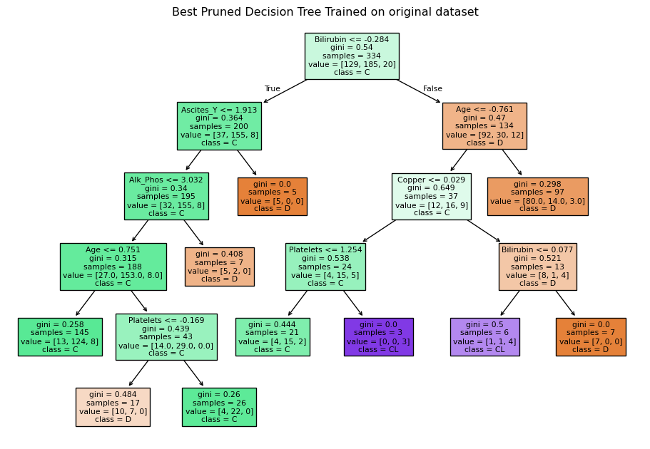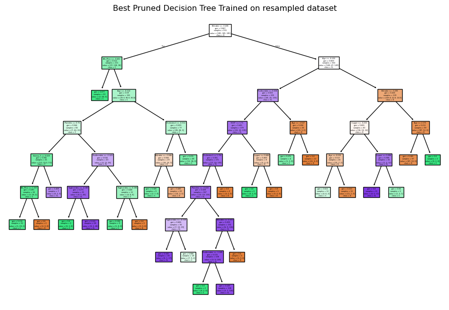 plt.title("Best Pruned Decision Tree Trained on resampled dataset")