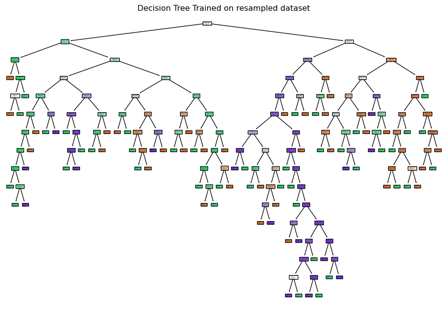 plt.title("Decision Tree Trained on resampled dataset")