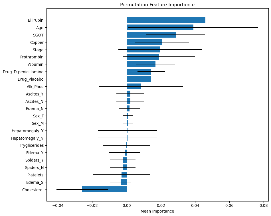 - Bilirubin and Age are the most statistically significant predictors — high mean importance.