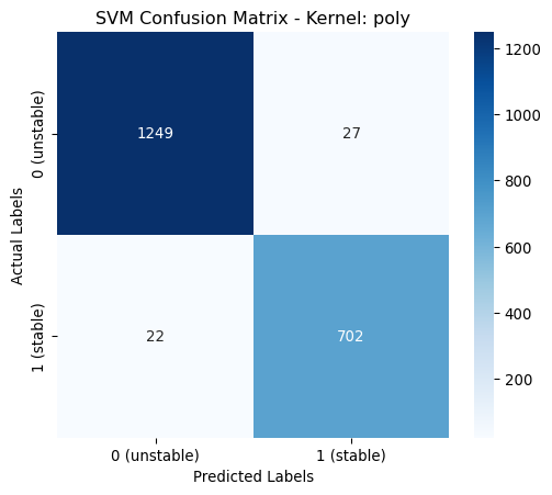Kernel Complexity Hierarchy: The results show the expected pattern: polynomial > RBF > linear in terms of model flexibility and performance on this dataset. The polynomial kernel achieved the highest performance (0.9775) but required strong regularisation (C=0.1).