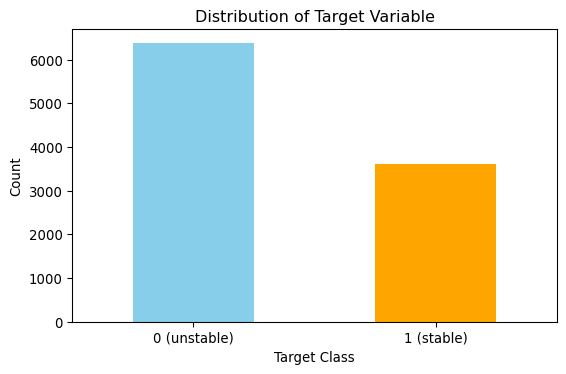 Here, I inspect the balance of the classes in the full dataset. The figure below shows there are more unstable’s (0) and stables’s (1). However, the dataset balance is reasonable and doesn’t require any further treatment.