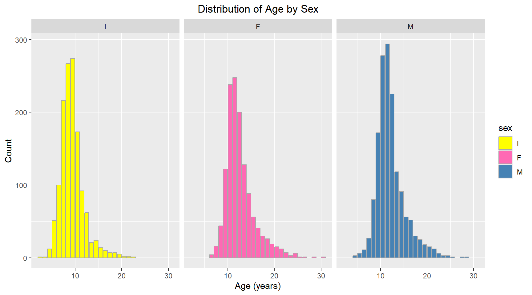scale_fill_manual(values = c("F" = "hotpink", "M" = "steelblue", "I" = "yellow")) +